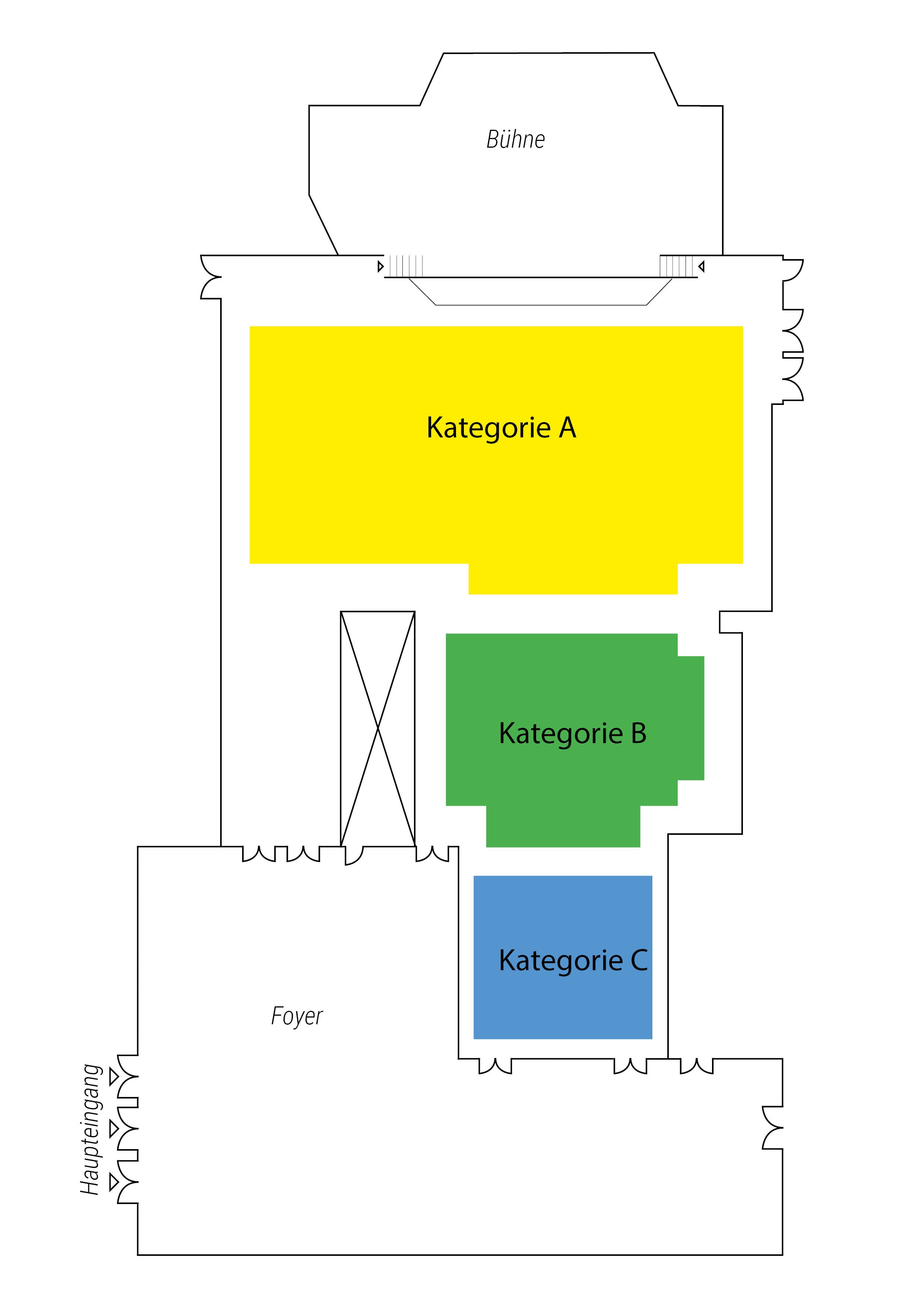 - Category A : Very good view of the stage, placement in the front rows.
